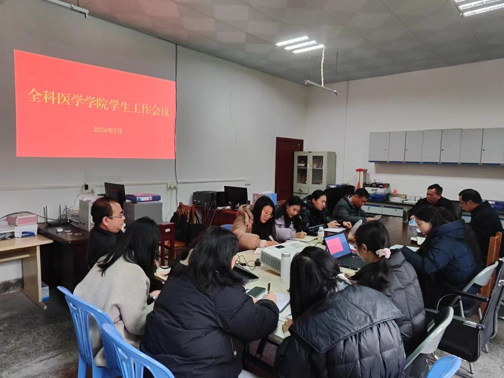 2月24日上午,全科医学学院召开了新学期学生工作会议,该院党委委员、副院长周爱琴主持,该院党委书记张自翔出席会议并讲话,全体辅导员及班主任参会。