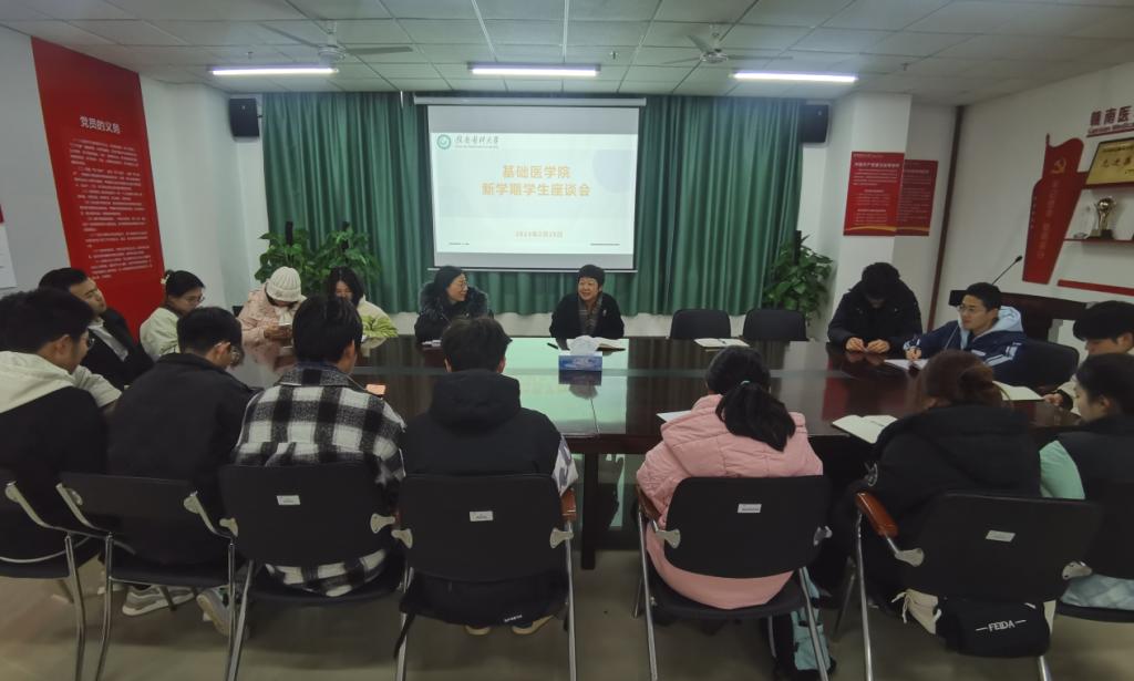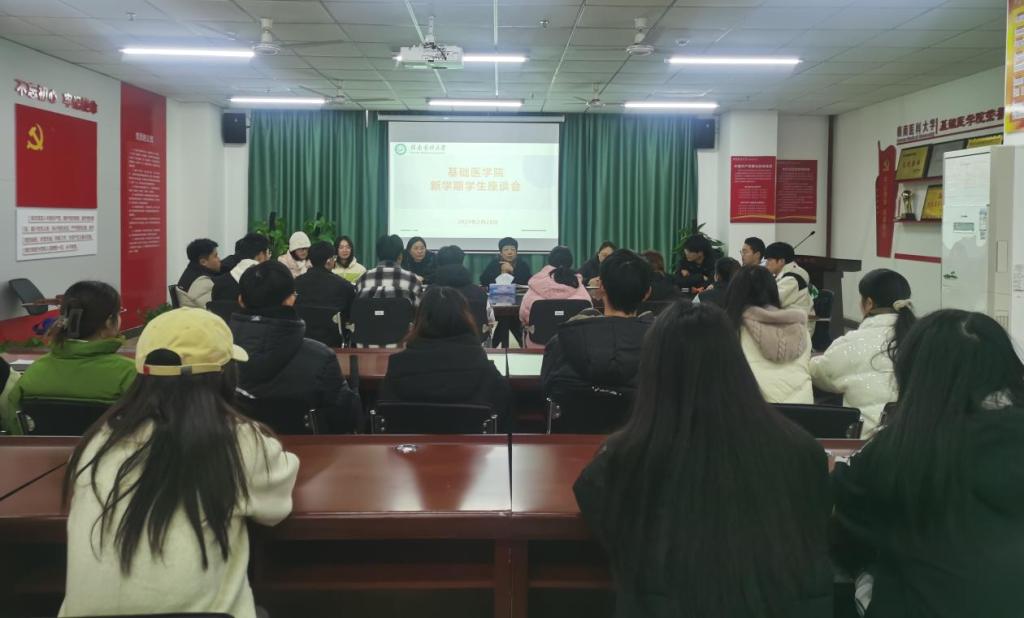 2月28日晚,基础医学院在黄金校区召开新学期学生座谈会,学院党委书记陈联娇、辅导员以及学院在黄金校区全体学生干部35人参加座谈会。