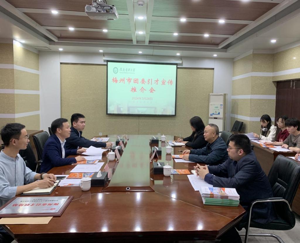 3月28日下午,共青团广东省梅州市委员会副书记委温扬涛一行 4人到我校开展人才引进专场宣讲会。