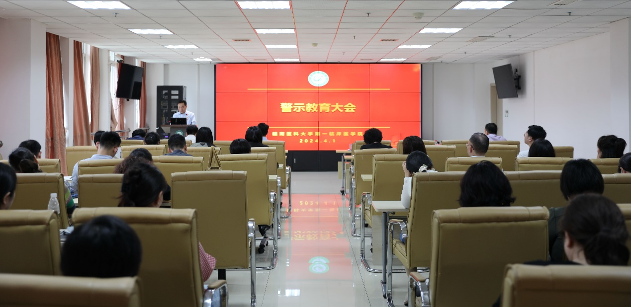 4月1日,第一临床医学院召开警示教育大会,该院院领导及全院教职工参会。会议由该院党委副书记肖殿民主持。