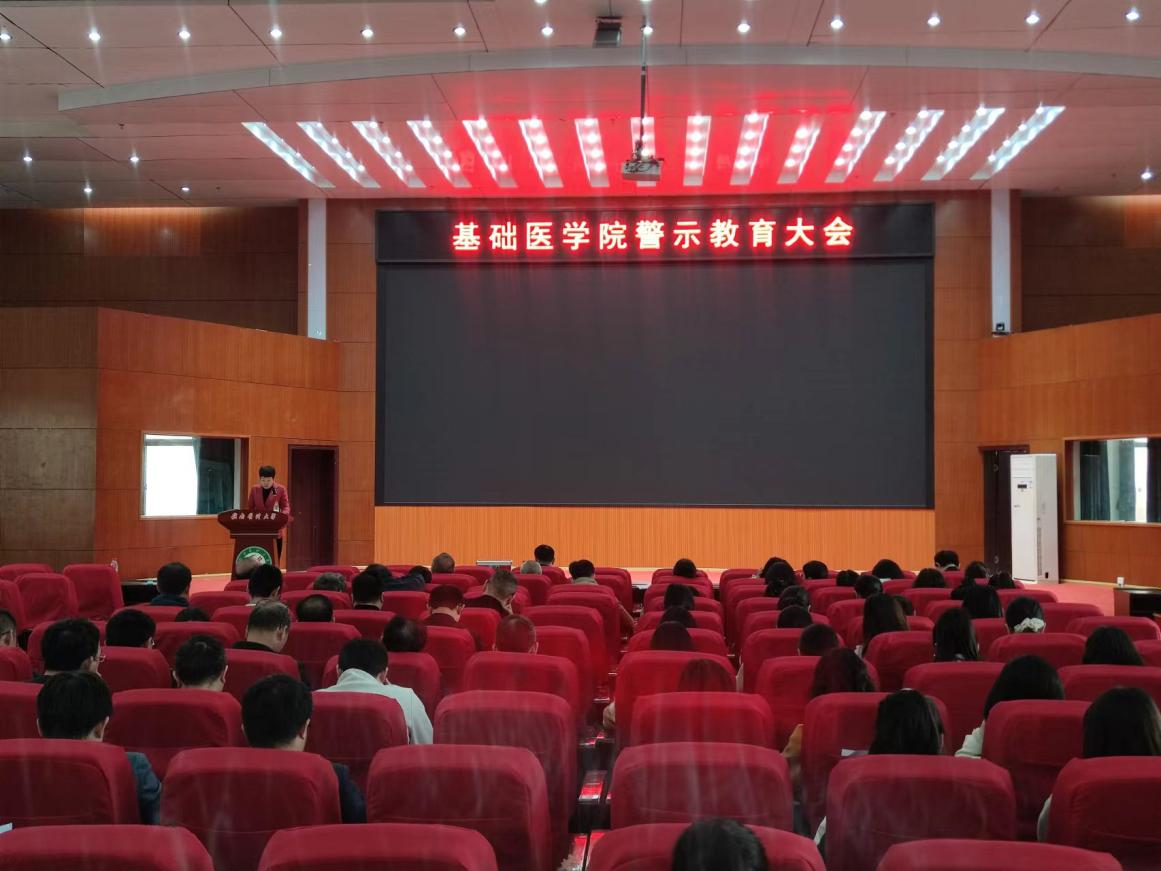4月8日,基础医学院召开警示教育大会,该院党委书记陈联娇主持,全体教职工参会。