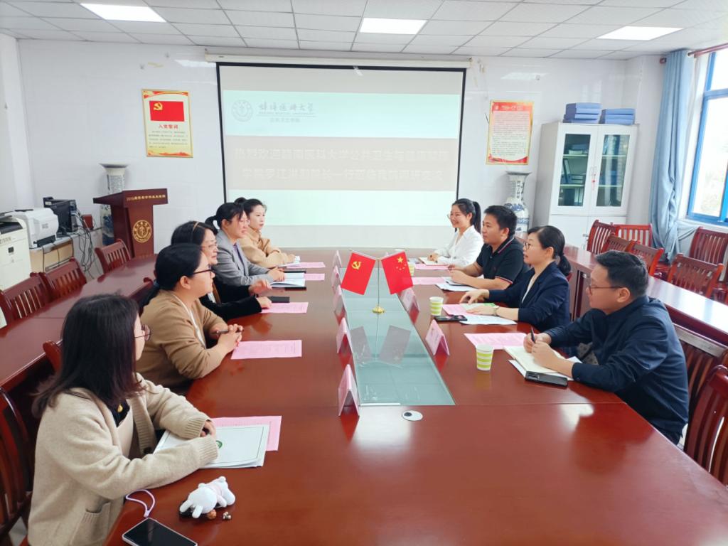4月23日,公共卫生与健康管理学院副院长罗江洪带队赴蚌埠医科大学公共卫生学院就食品卫生与营养学专业开设情况进行考察交流,蚌埠医科大学公共卫生学院院长谢虹、营养与食品卫生学教研室主任周礼华、食品卫生与营养学专业负责人王力及相关科室骨干教师参加座谈交流。