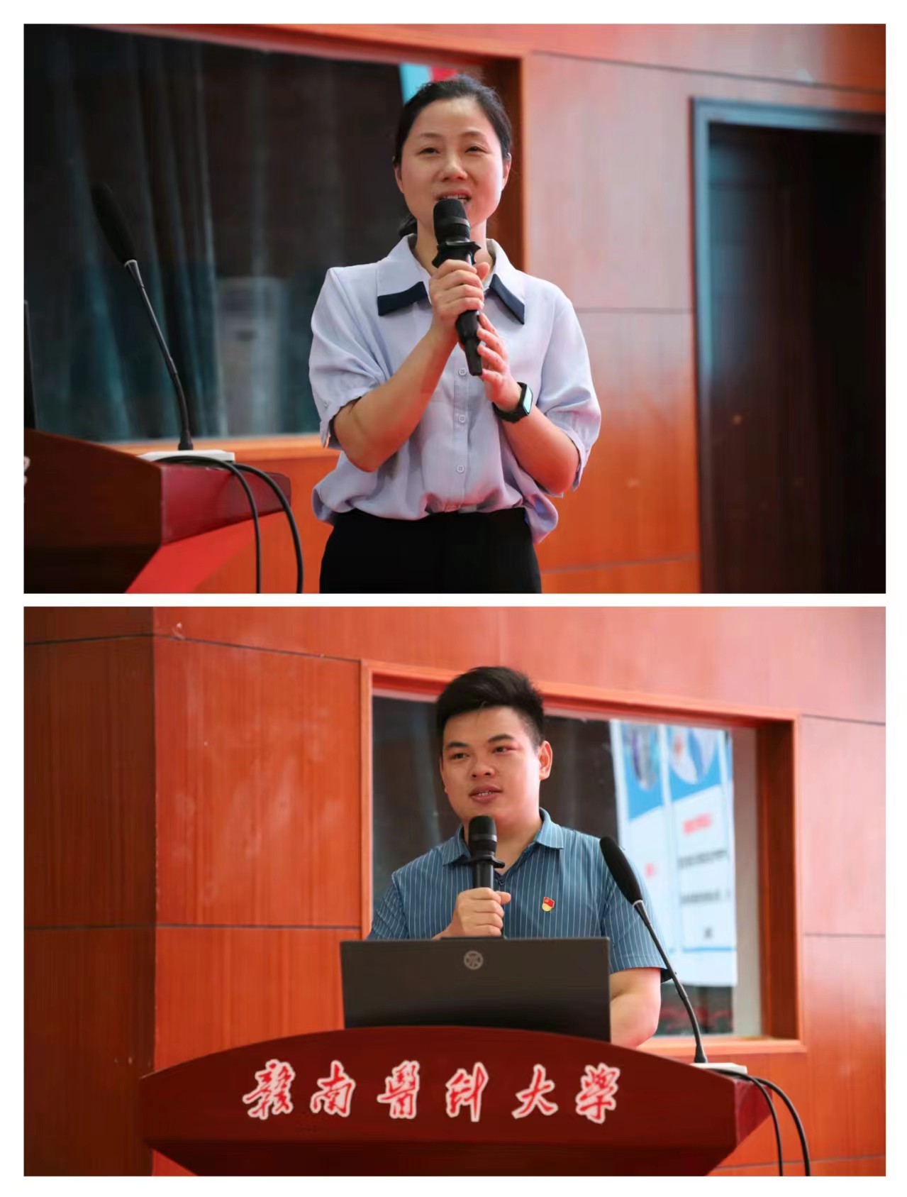 2名校友依次进行分享。2007届护理学专业校友左金梅以《一路向阳》为主题,回顾了自己的学习成长经历,分享了自己在护理行业深耕多年的体会与感悟,并就学业规划、就业指导等方面提出了宝贵建议。2019届急危重症班蒋孔明以《逐梦护理、圆梦护理》为主题,向同学们分享了自己作为第一批援鄂队员的经历和感悟,勉励同学们要在激烈的竞争中把握机遇,敢闯敢拼,实现自我价值,努力探索“护理+”技能,不断拓宽自己的人生道路。