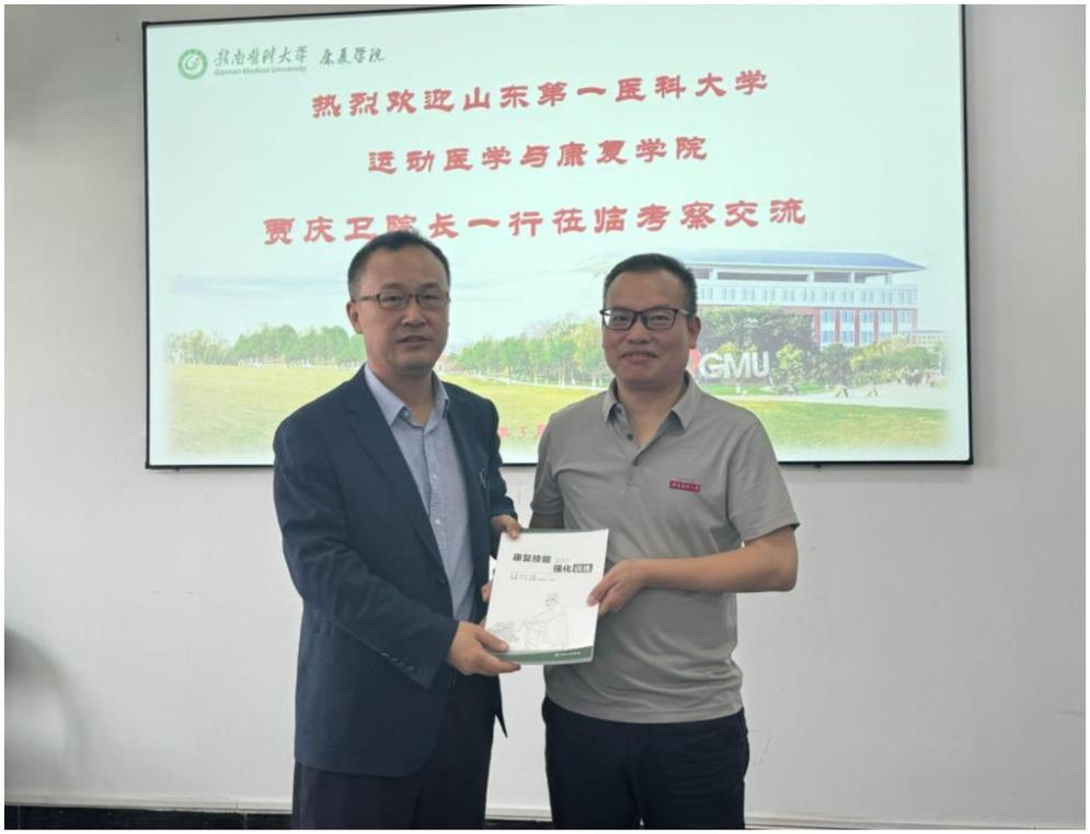 该院向到访单位赠送了温优良主编的《康复技能强化训练》教材。