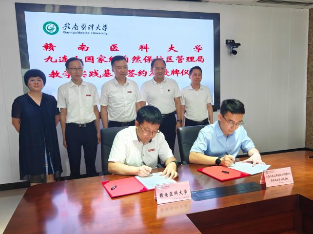 6月11日,药学院与九连山国家级自然保护区管理局在黄金校区举行教学实践基地签约及授牌仪式。该院领导、九连山国家级自然保护区管理局班子成员等参加活动。