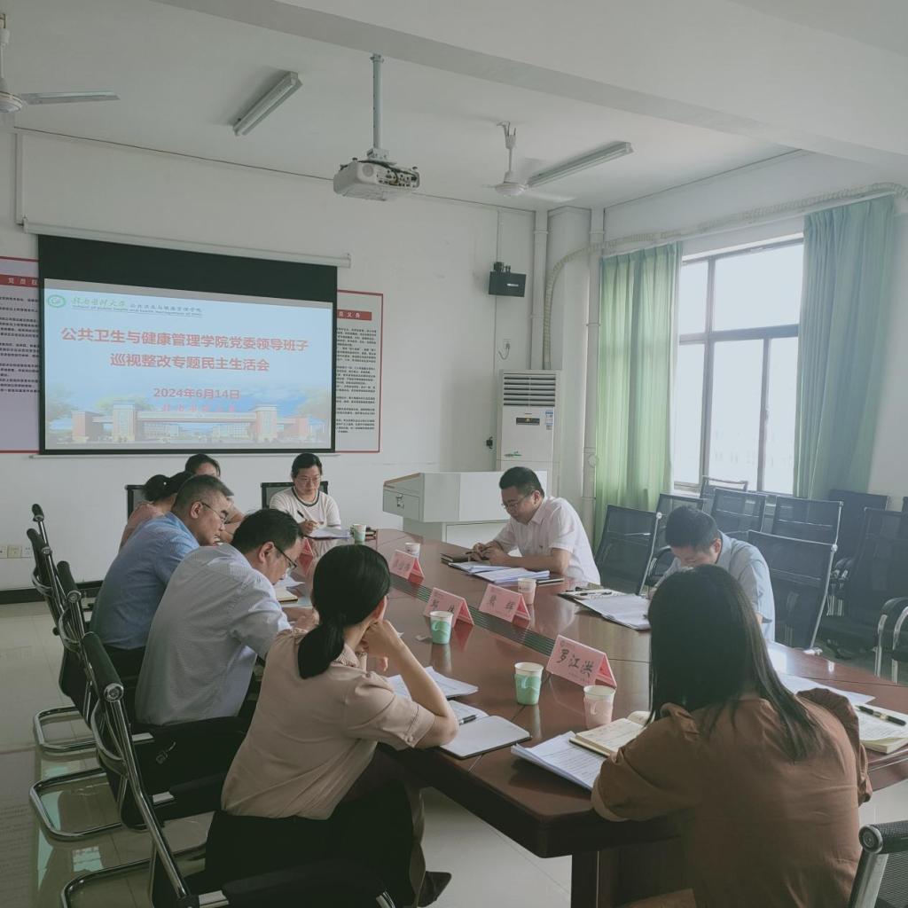 6月14日下午,公共卫生与健康管理学院党委召开巡视整改专题民主生活会。学校督导组成员廖信伟、熊辉到会指导。会议由该院党委书记邱伟主持,该院党委领导班子成员参加,师生代表列席会议。