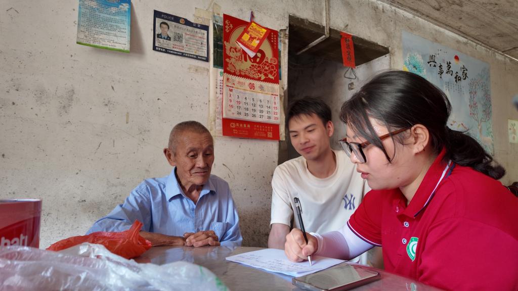 聆听初心故事,厚植家国情怀。“入了党就要为人民服务一辈子,不求回报。”这是崇义县上堡乡均源村有55年党龄的87岁老党员廖聪福经常挂在嘴边的话。实践队员在村干部带领下,来到廖聪福家中开展慰问访谈,聆听他入党以来的心路历程,深刻感受信仰的力量。当谈到村子近些年的变化时,廖聪福感慨地说:“这几十年,我们生活的各个方面都发生了翻天覆地的变化,共产党让我们老百姓过上了好日子,身为一名共产党员非常光荣也非常感恩。”访谈最后,廖爷爷表达了对青年一代的殷切期盼:“年轻人要始终听党话,永远跟党走,努力学习,练好本领,乐于奉献。”这份谆谆嘱托,激励着实践队员们要勇挑重担,奋勇争先,努力成长为有理想、敢担当、能吃苦、肯奋斗的新时代好青年。