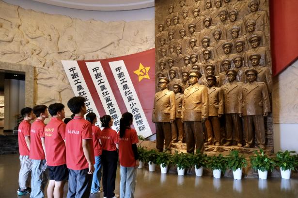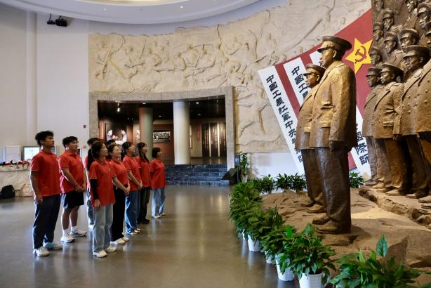 为表达对革命先烈的崇高敬意与深切怀念,实践服务团成员在将军馆内轻声吟唱红歌,歌颂祖国、赞美人民、讴歌英雄,传承红色基因中的革命精神和爱国情怀。