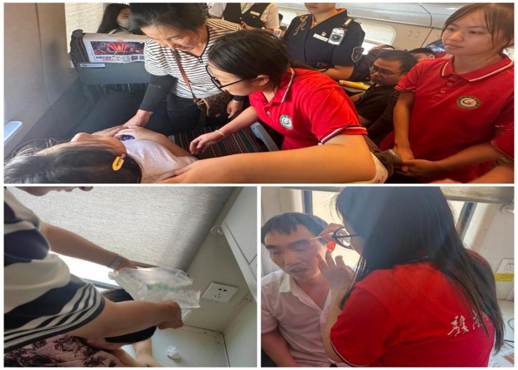 路途中,实践队多次参与列车上乘客的紧急救治,他们用所学专业服务社会所需,用实际行动践行医学生的誓言。