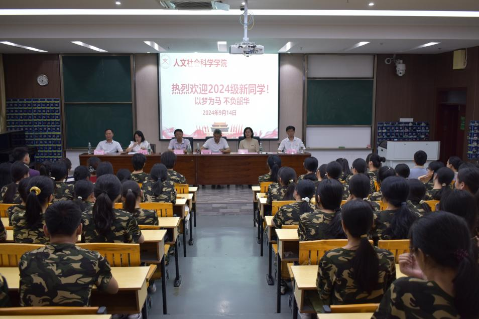 9月14日晚,人文社会科学学院在黄金校区举行2024级迎新大会。该院党委书记王立,党委副书记、院长赖日勇,党委委员、副院长唐宏,各专业负责人、新生班主任、辅导员以及全体新生参加。党委副书记毛磊焱主持会议。