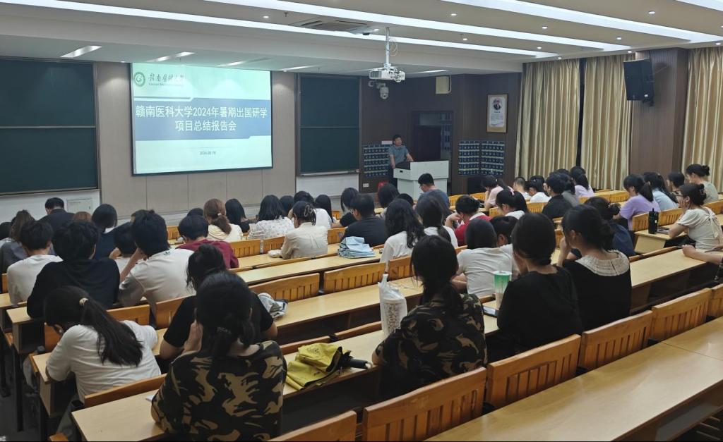 报告会上,我校国际教育学院副院长钟富有首先从我校师生出国研学发展历程、国际交流学习成果及海外研学对学生个人发展意义等多方面进行了生动的分享。他还鼓励学生们努力学习专业知识,提升个人综合能力,积极参加学校海外研学项目,共同讲好赣医大学子的成长成才故事。