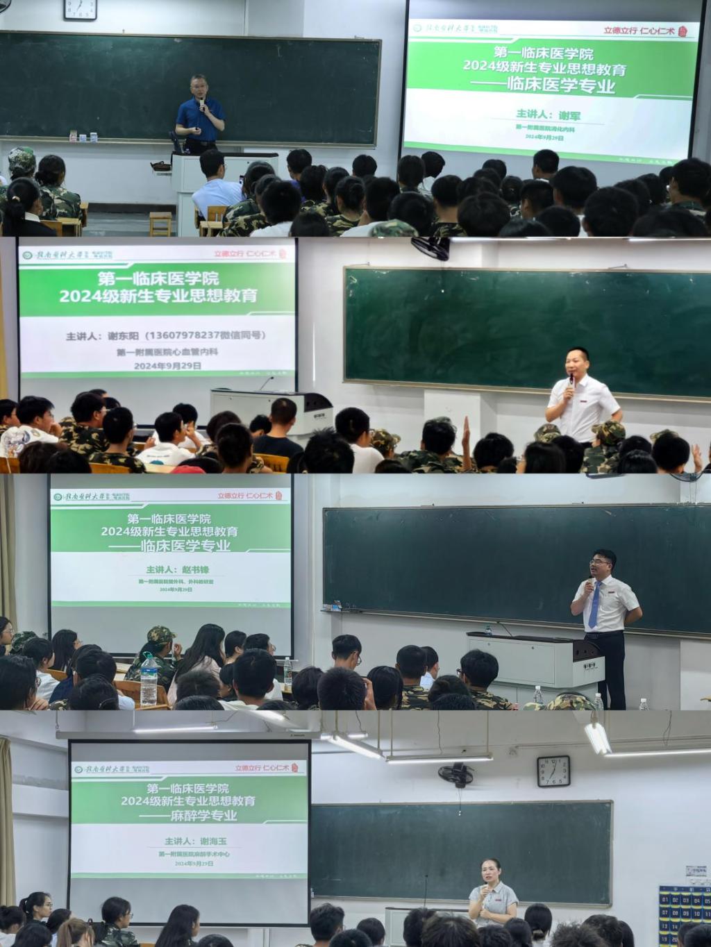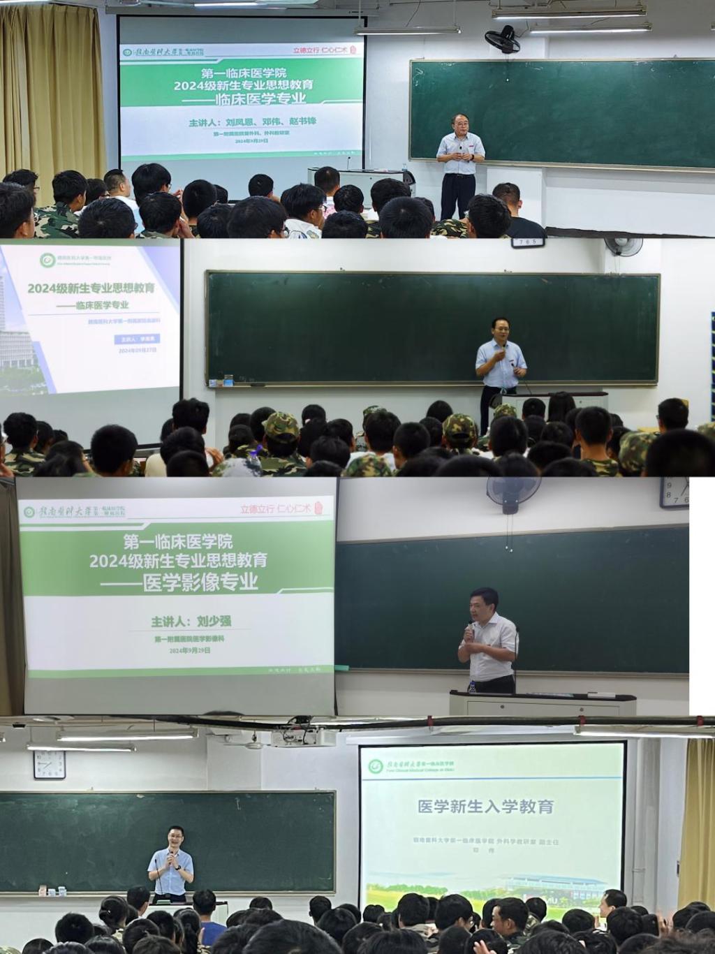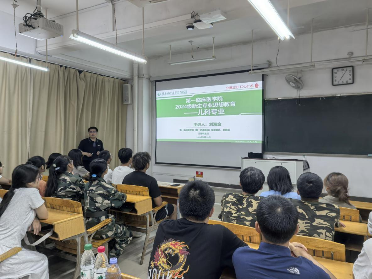 本次专业思想教育面向临床医学专业、麻醉学专业、儿科学专业、医学影像学专业新生。活动邀请到第一附属医院(第一临床医学院)党委委员、第一临床医学院副院长刘海金及一附院普外科、心血管内科、消化内科、医学影像科、麻醉手术中心等多个临床科室负责人为新生作专业思想教育。