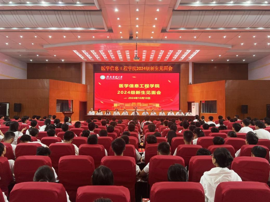 10月10日,医学信息工程学院举行2024级新生见面会。该院领导班子成员、专业负责人、科室主任、辅导员、新生班主任以及2024级全体新生参加。会议由该院党委副书记王静雅主持。