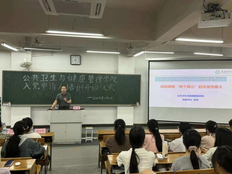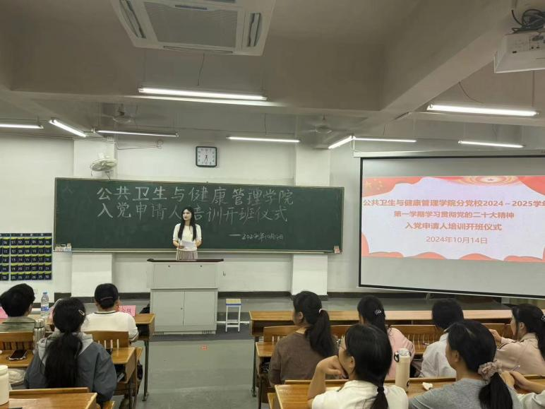 10月14日,公共卫生与健康管理学院举办入党申请人培训开班仪式暨培训第一讲。学院党委书记邱伟主讲,155名入党申请人参加。