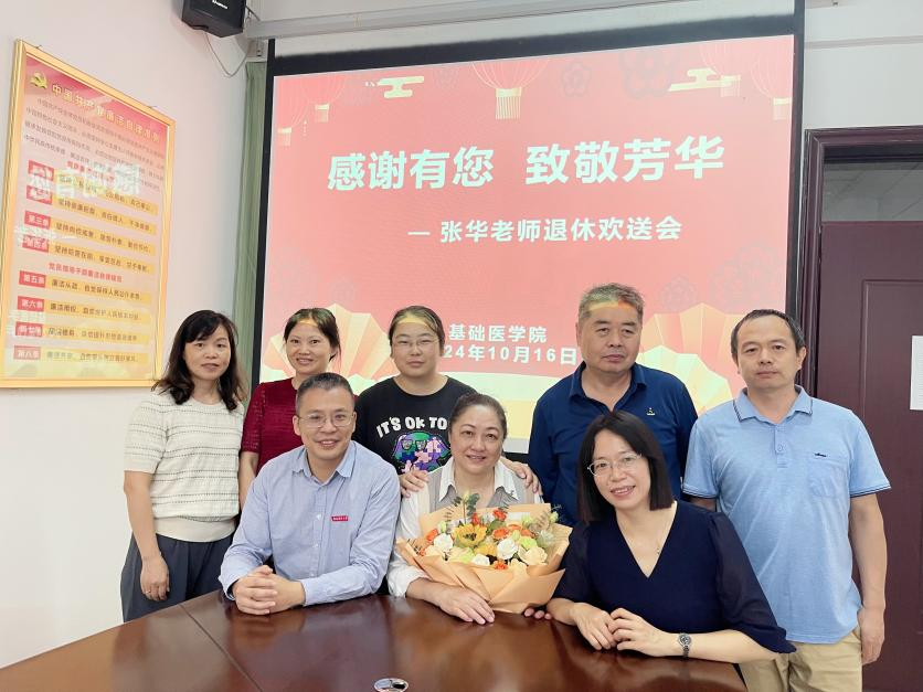 10月16日,基础医学院在黄金校区为张华老师举办了“感谢有你,致敬芳华”荣誉退休仪式,学院领导、荣退人员、同科室老师共同见证了这感人又温馨的时刻。