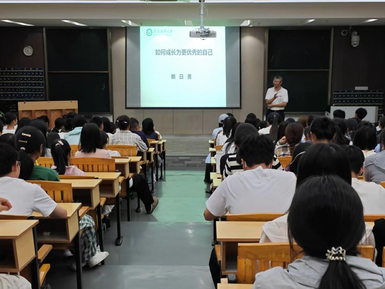 10月16日晚,人文社会科学学院党委副书记、院长赖日勇为2024级新生带来了一场题为《如何成长为更优秀的自己》的入学教育专题讲座,该院辅导员及全体新生到场聆听。