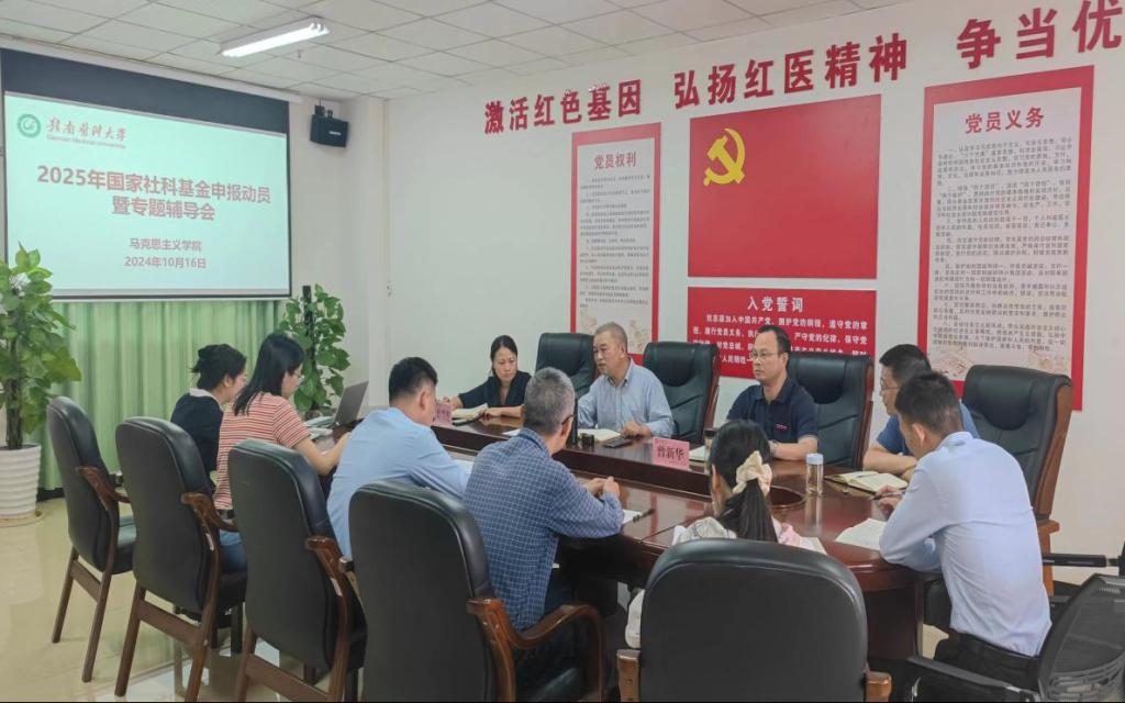 为做好2025年度国家社科基金项目申报工作,切实提高项目申报质量,10月16日上午,马克思主义学院在黄金校区召开了2025年度国家社科基金项目申报动员暨专题辅导会。