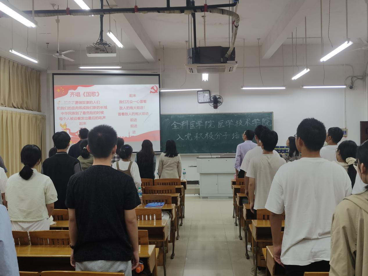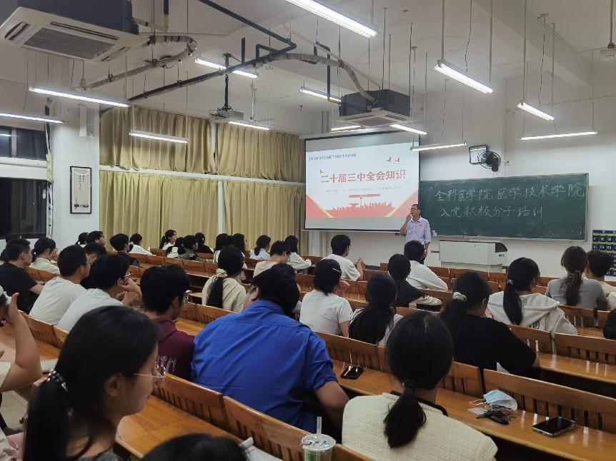 10月22日晚,全科医学学院与医学技术学院在黄金校区联合举行2024-2025学年第一学期入党积极分子培训开班仪式暨培训第一讲。医学技术学院党委书记范启兰、全科医学院党委副书记朱锦、学生党支部书记以及入党积极分子参加。