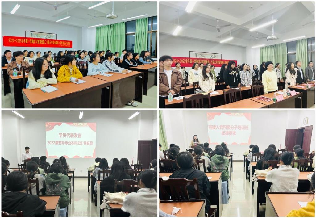 10月28日晚,药学院在黄金校区举行2024-2025学年第一学期学习贯彻党的二十届三中全会精神入党积极分子培训开班仪式暨培训第一讲。该院党委副书记罗丽萍、教工党支部书记、学生党支部书记及入党积极分子40余人参加。