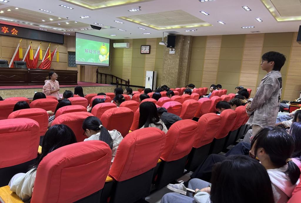 交流互动环节,同学们就如何更好规划时间、如何确定科研方向等方面进行提问,赖莹祯和夏悦耐心解答,现场气氛热烈。