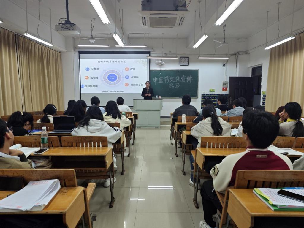 11月11日晚,药学院在黄金校区开展“中医药文化进班级”主题宣讲活动,2024级部分同学参加。