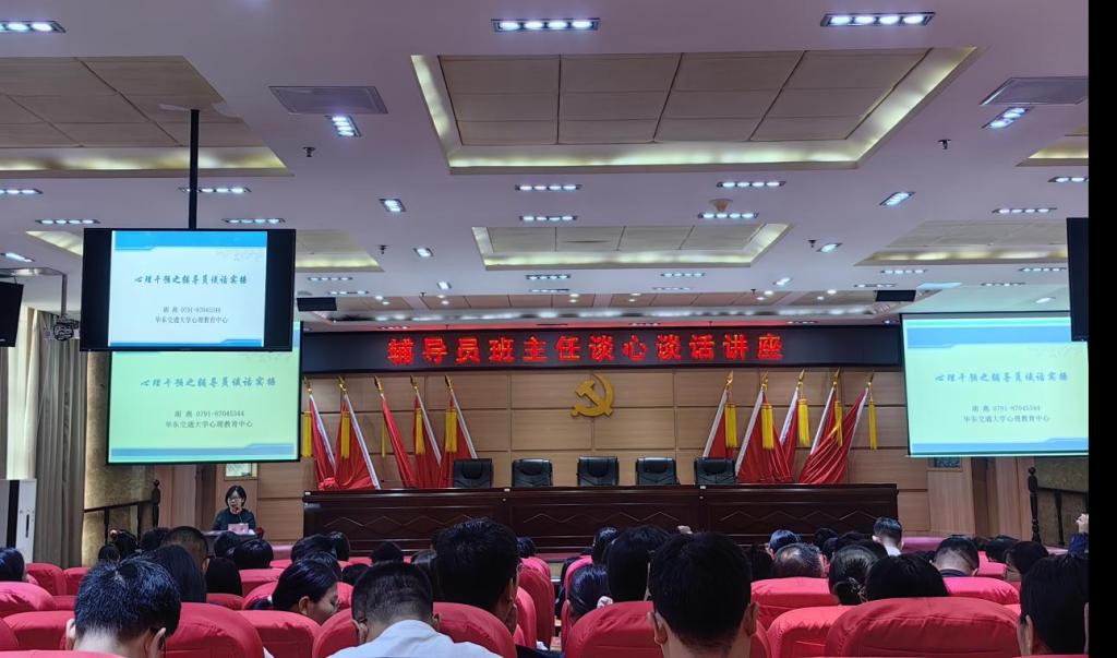 11月15日下午,心理咨询中心在黄金校区举办学生工作队伍谈心谈话技能讲座。此次讲座邀请了华东交通大学心理咨询中心胡燕博士主讲,各学院分管学生工作领导以及全体辅导员、班主任到场聆听。