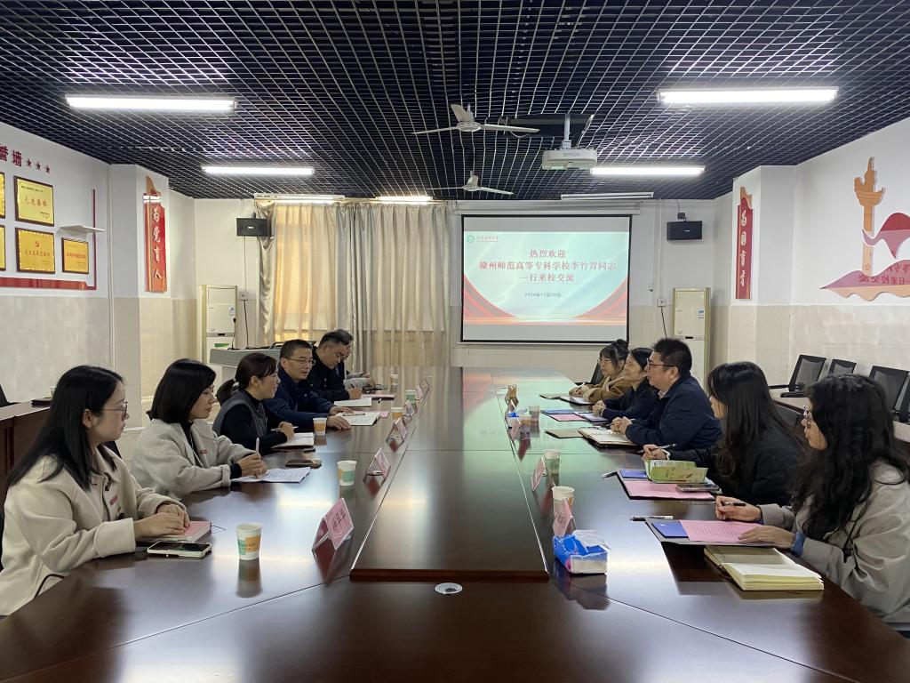李竹青对我校的热情接待表示感谢,并简要介绍了赣州师范高等专科学校学生工作基本情况,希望今后能进一步深化双方的交流,在互相促进中创新思路、搭建平台、共同进步。