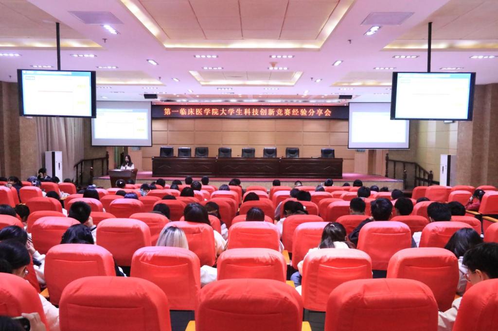 近日,第一临床医学院在黄金校区举办大学生科技创新竞赛经验分享会。分享会特邀在科技创新竞赛中取得斐然成绩的2021 级宋承桂、2022 级张伊蕾以及王宇煊等三位同学作分享交流。