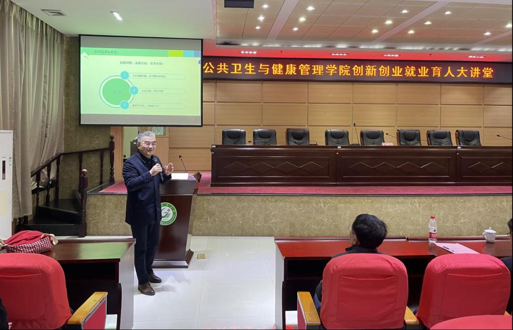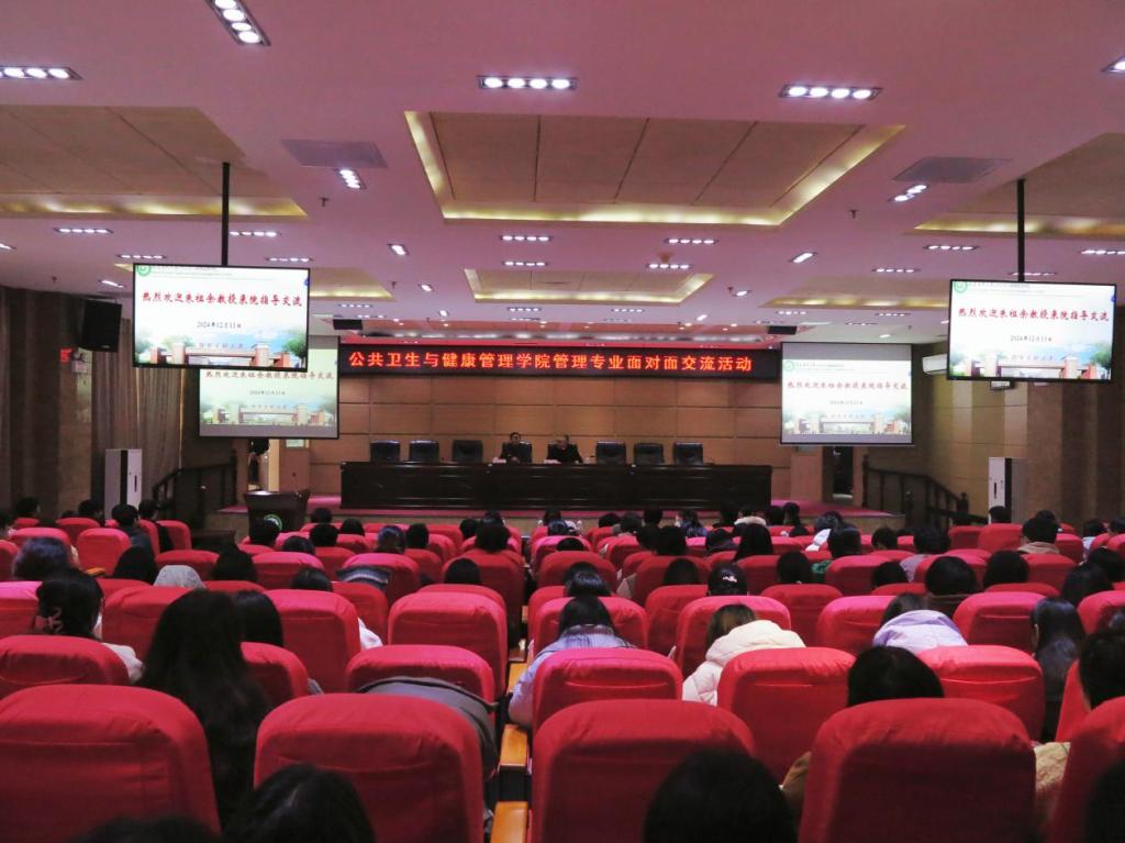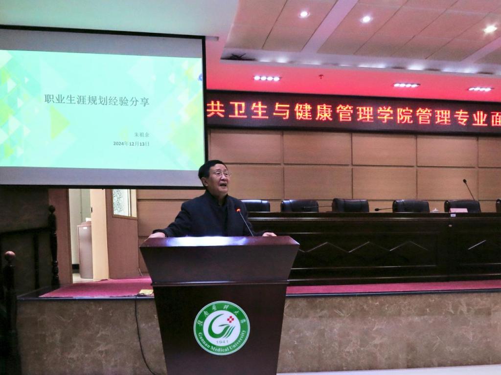 12月13日,公共卫生与健康管理学院在黄金校区举办创新创业就业育人大讲堂暨管理专业面对面交流活动。本次活动特别邀请了江西卫生职业学院原院长朱祖余教授分享职业生涯规划经验,学院院长黄诚,社会医学与卫生事业管理教研室、学工办教师,公共事业管理、健康服务与管理专业学生共计200余人参加交流活动。