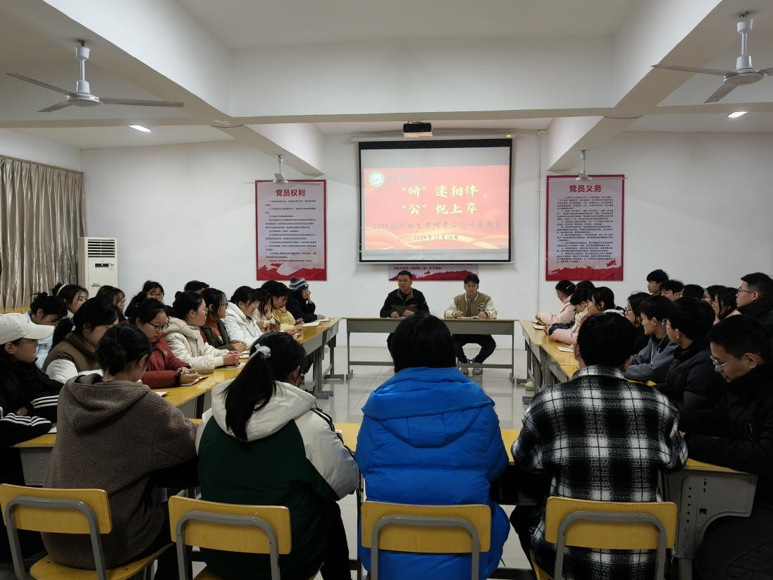 为帮助考研考公学子增强备考信心,进一步做好考前心理压力调适工作,12月16日晚,药学院在学生宿舍五六栋党员活动室举行2025届毕业生考研考公慰问座谈会,学工办辅导员及20余名考研考公学生代表参加。