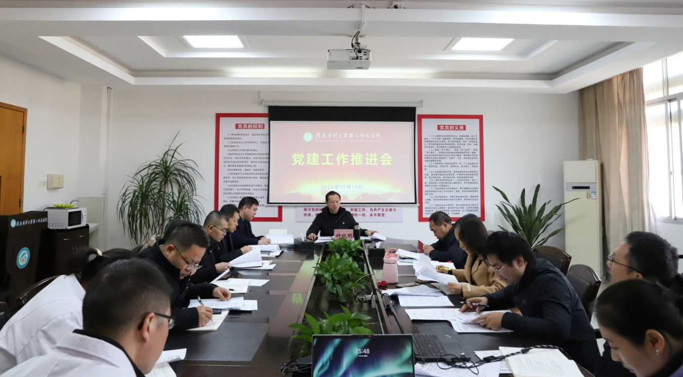 12月19日下午,第二临床医学院(二附院)召开党建工作推进会。该院党委书记钟秋明主持会议,全体党政领导班子成员及党群部门负责人参加会议。