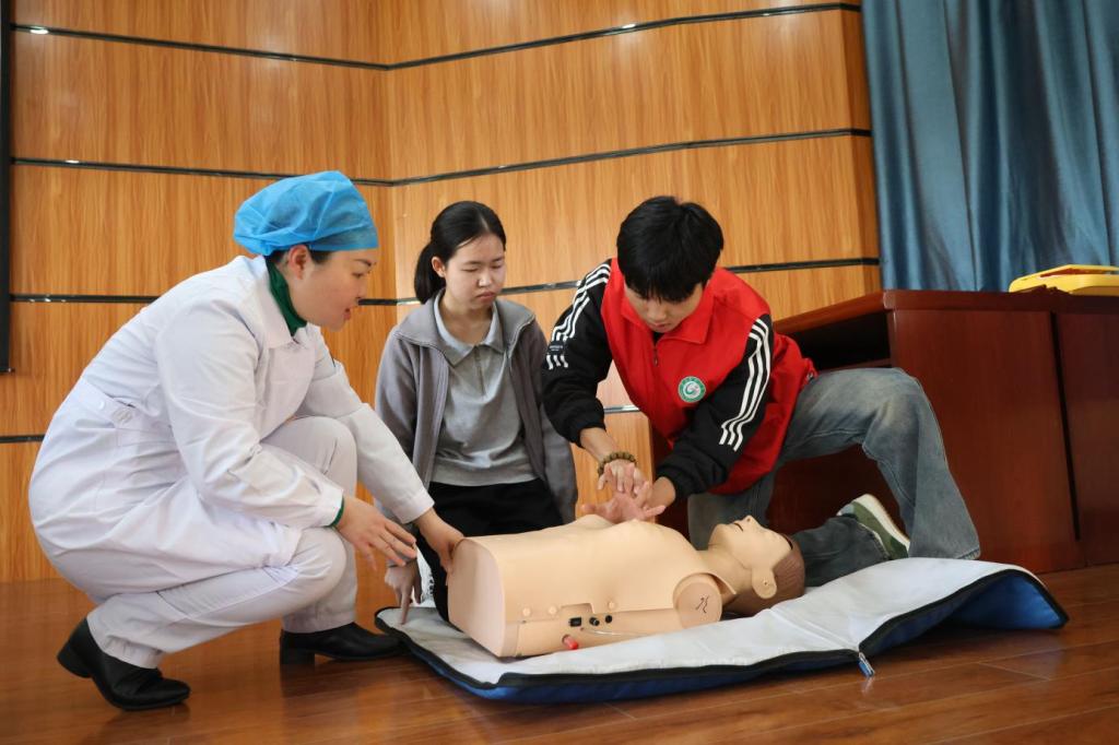 活动现场,第一附属医院急诊科医护人员通过理论讲解与情景模拟,生动演示了成人心肺复苏的标准流程、止血包扎技巧,并针对成人与儿童的生理差异,细致解析了海姆立克急救法的操作要领。经过专业考核的志愿者们作为“急救导师”,一对一指导师生进行实操演练,及时纠正动作细节,确保操作规范。师生热情高涨,纷纷上台体验,现场互动热烈。