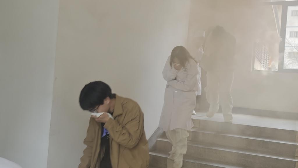 演练前,该院邀请保卫处教师对现场师生进行消防安全知识培训,详细讲解火灾预防知识、火场逃生技巧以及灭火器的正确使用方法等。演练中,该院师生按照预定疏散路线,用湿毛巾、湿纸巾捂住口鼻,弯腰低姿有序撤离至安全区域,无一人滞留,充分展现了师生们良好的应急反应能力。