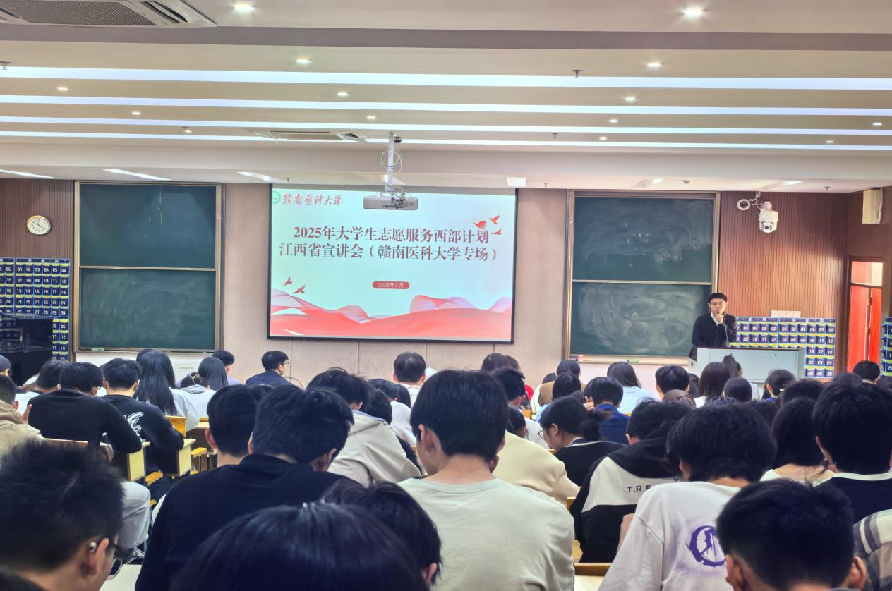 4月15日,学校团委在黄金校区举办2025年江西省西部计划宣讲会(赣南医科大学专场),共计200余名大学生参加。
