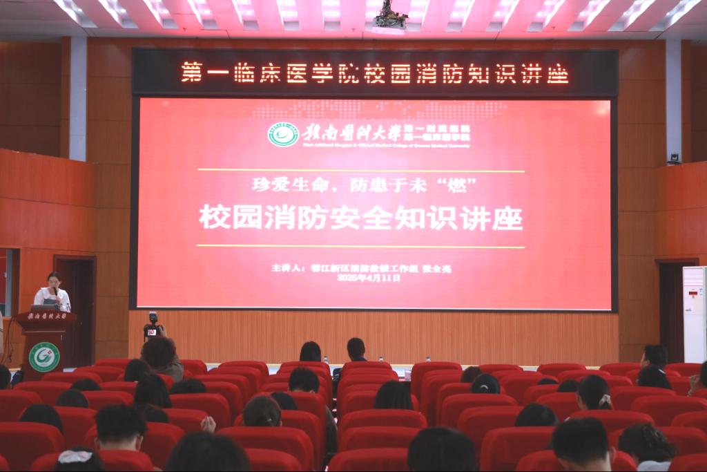 4月11日,第一附属医院(第一临床医学院)举办“珍爱生命,防患未‘燃’”主题消防安全教育讲座。活动特邀蓉江新区消防救援工作组宣教员张全亮担任主讲,学院师生代表共计300余人参与主题讲座,现场学习氛围热烈。