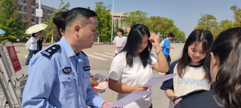 4月15日上午,赣州市公安局蓉江公安分局与学校保卫处(人武部)共同举办“国家安全 人人有责”图片展,蓉江公安分局肖一男警官和蓉江新区综治办宋国强等人共同共同为广大师生解读反恐怖、反邪教、保密法、生物安全、反诈骗等法律法规,从多个领域给师生讲解了国家安全的重要性,活动还发放各种国家安全宣传资料二千多份。