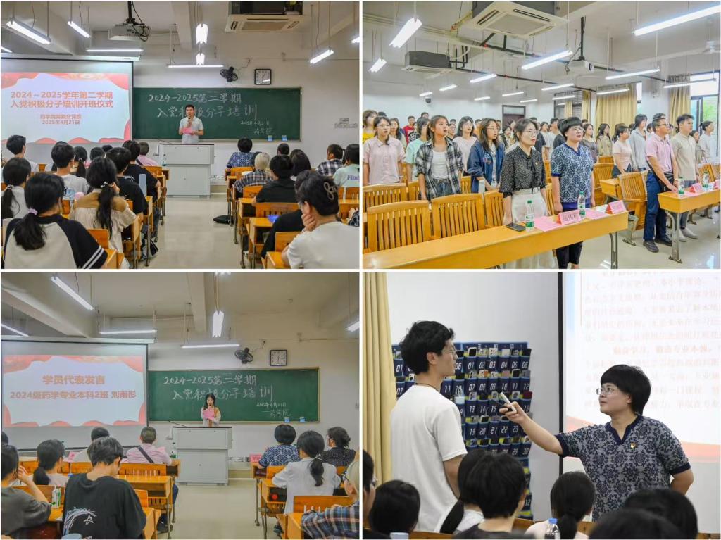 4月21日,药学院在黄金校区举行2024~2025学年第二学期入党积极分子培训开班仪式暨培训第一讲。该院党委副书记罗丽萍、教工党支部书记、学生党支部书记及全体入党积极分子共100余人参加。