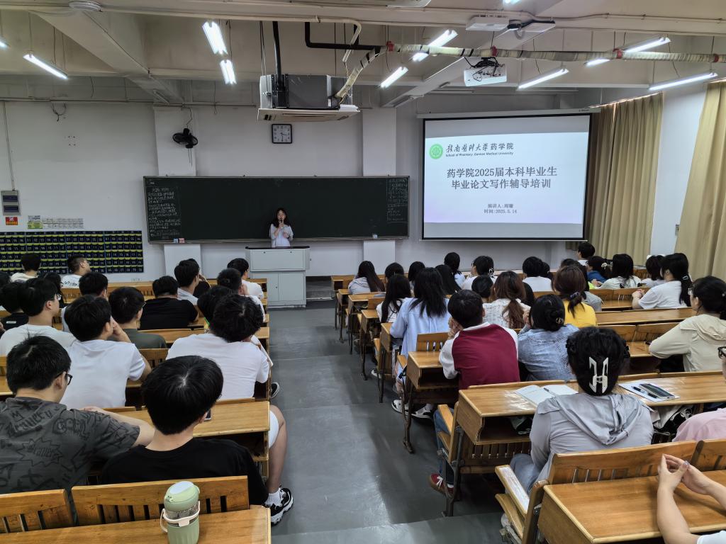 5月14日,药学院举行2025届本科毕业生毕业论文写作辅导培训会,全体本科毕业班同学参加。培训由学院副院长丁冶春主持。