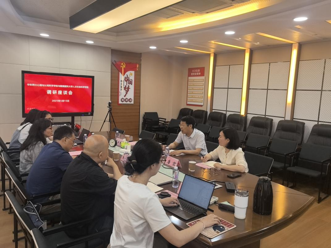 调研最后一站前往华东师范大学心理与认知科学学院MAP(应用心理专业硕士)中心。华东师大MAP中心负责人系统介绍了应用心理学硕士的培养方案、课程体系及产学研融合经验,为赣南医大心理学专业建设提供了重要参考。华东师大方面表示将积极推荐优秀博士毕业生与赣南医大对接,助力学院心理学学科高质量发展。