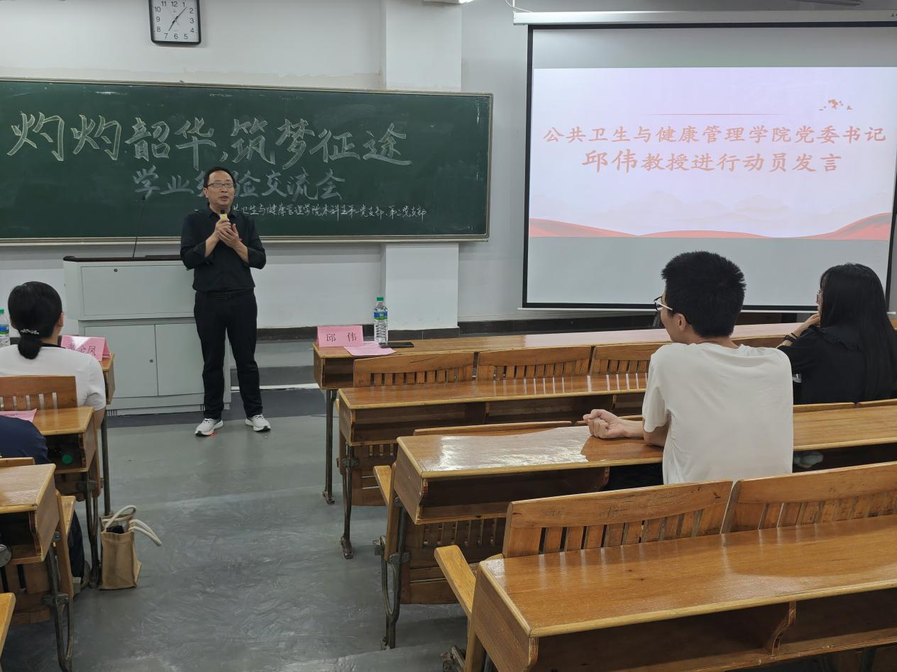 5月28日,公共卫生与健康管理学院本科生党支部举办了主题为“灼灼韶华,筑梦征途”的学业经验分享交流会。赵伟杰等7位考研考公上岸的毕业生党员和入党积极分子代表作经验分享。邱伟、高艳芳、学生党员、入党积极分子以及学生代表200余人参加。活动通过线上线下同步直播的方式进行。
