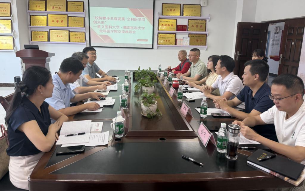调研期间,遵义医科大学全科医学院党委书记黎飞、院长肖雪,桂林医科大学全科医学院院长郑楚、副院长梁志清分别介绍了各自学院的历史沿革、学科特色、专业建设及人才培养总体情况,着重分享了全科医学人才培养的创新举措与成功经验。黄光生也向两校介绍了学校发展的整体情况以及全科医学人才培养的历史与现状、成效与特色。