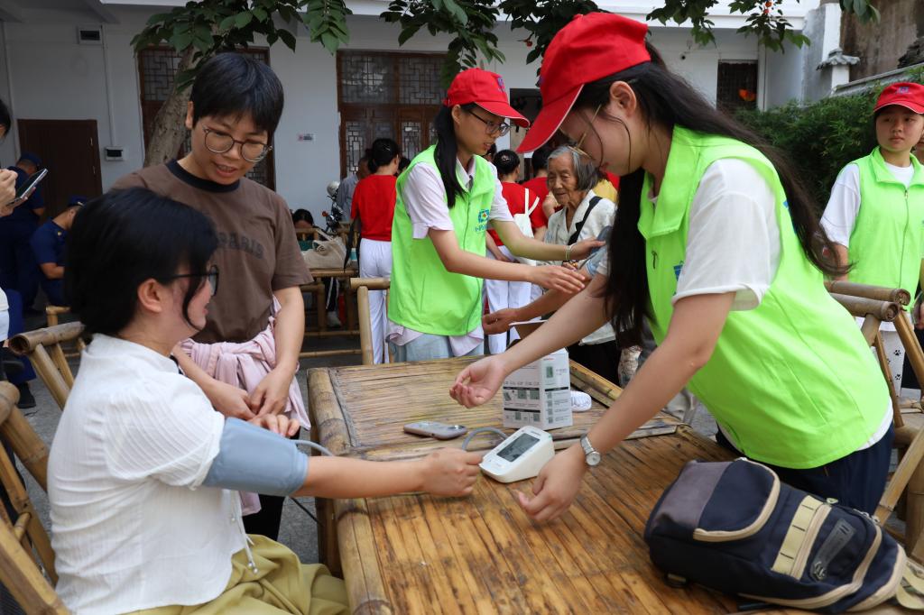 活动现场,志愿者身着统一志愿者服装,在专业教师的指导下,为当地居民进行了血压测量、血糖检测、中医推拿、慢性病咨询、应急救助教育等多项服务,吸引了数百名社区居民参与,严谨的态度和热情的服务赢得群众连连称赞。