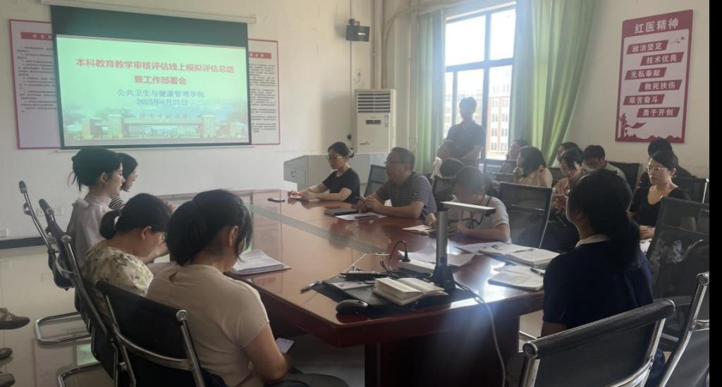 为全面贯彻学校关于本科教育教学审核评估工作要求,进一步提高教育教学质量,6月25日,公共卫生与健康管理学院开展线上模拟评估总结暨工作部署会。