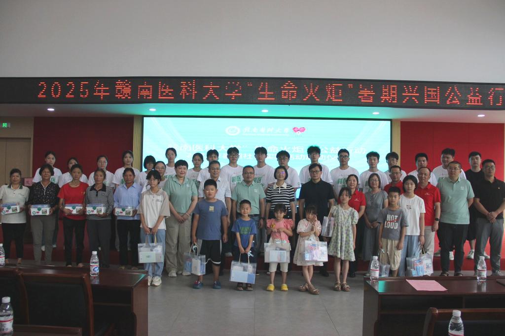 仪式上,与会领导向四支学生志愿者队伍分别授旗,标志着“生命火炬”暑期兴国公益行正式启动。实践队还向当地捐赠了健康小药箱及文具大礼包二十余份,以实际行动支持基层发展,彰显了公益行动的务实担当。
