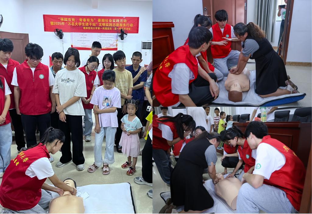 为深入贯彻落实“牢记嘱托强国有我 行走赣鄱感恩奋进—文化赣鄱行”2025年江西省高校学子暑假大思政实践活动,积极推进“万名大学生进千站”、红色走读、铸牢中华民族共同体意识,近日,赣南医科大学第一附属医院(第一临床医学院)“红医新长征”社会实践服务团走进章贡区沙石镇双桥村新时代文明实践站,开展“医心护乡 健康同行”主题志愿服务。