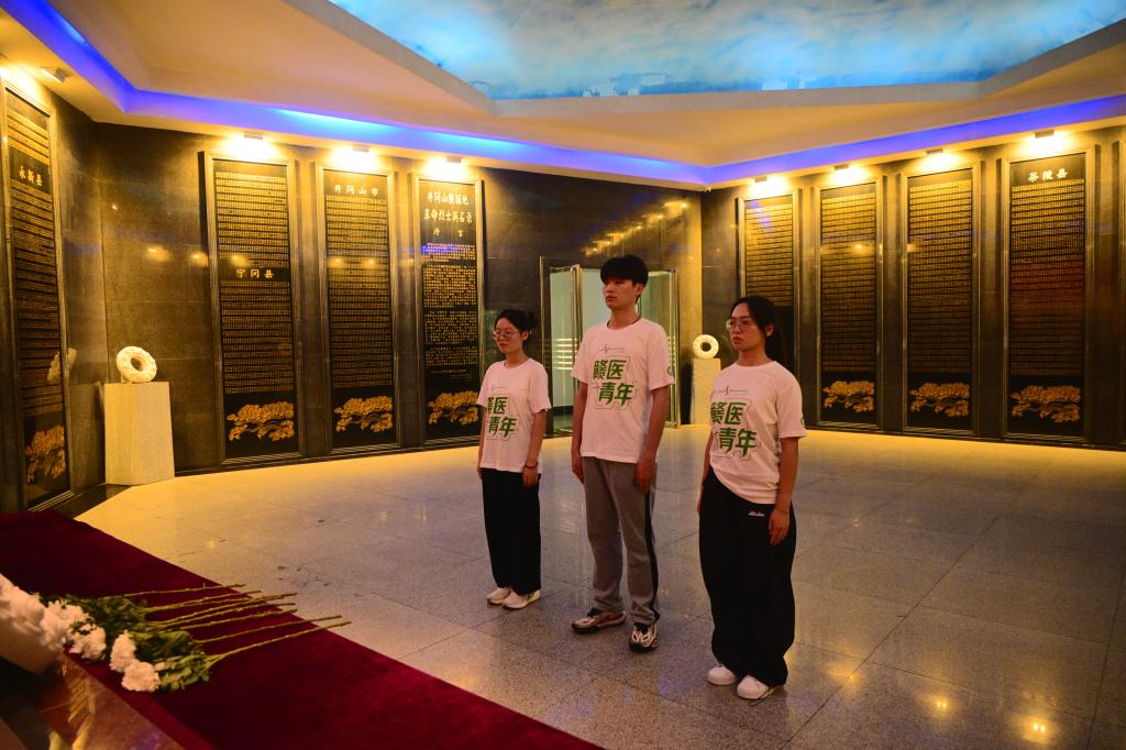 拾级而上,新时代红医服务团来到井冈山革命烈士陵园,瞻仰烈士英魂。纪念墙上密密麻麻的烈士名字,无名碑下埋葬着数不尽的英灵—他们之中,有许多曾与我们一样年少。站在这片英雄山前,我们肃立良久,只为缅怀那群用生命守护信仰的前辈。“我们要替他们看遍中国的大好河山。”这不仅是一句誓言,更是一份代代传承的使命。从他们手中,我们接过了火炬,要以医学之力继续守护这片热土。