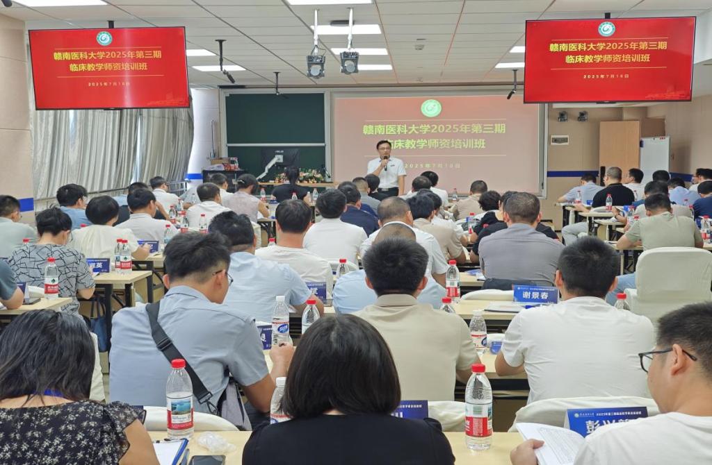 7月18日,在第一附属医院黄金院区举办2025年第三期临床教学师资培训班,培训附属兴国医院(兴国县人民医院)和附属于都医院(于都县人民医院)临床教师83人。