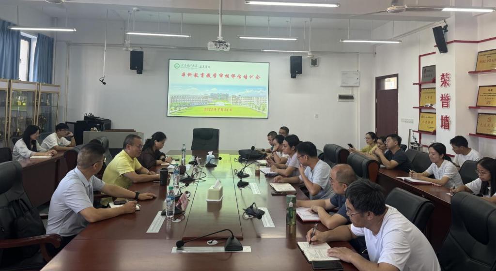 学院副院长李伟为全体教职工作《本科教育教学审核评估内涵解析》专题培训,进一步解析了审核评估工作的意义、具体工作流程,布置了学院迎评冲刺期间的工作部署等。