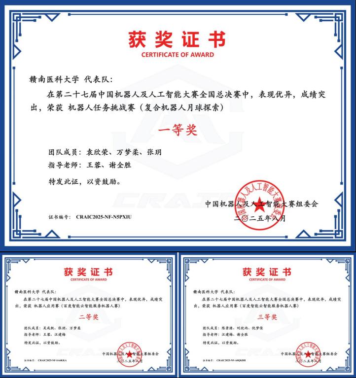 近日,第二十七届中国机器人及人工智能大赛全国总决赛在苏州职业技术大学圆满落幕。我校医学信息工程学院学子在与强校的同组对抗中,表现突出,荣获全国总决赛一等奖1项、二等奖1项、三等奖3项。