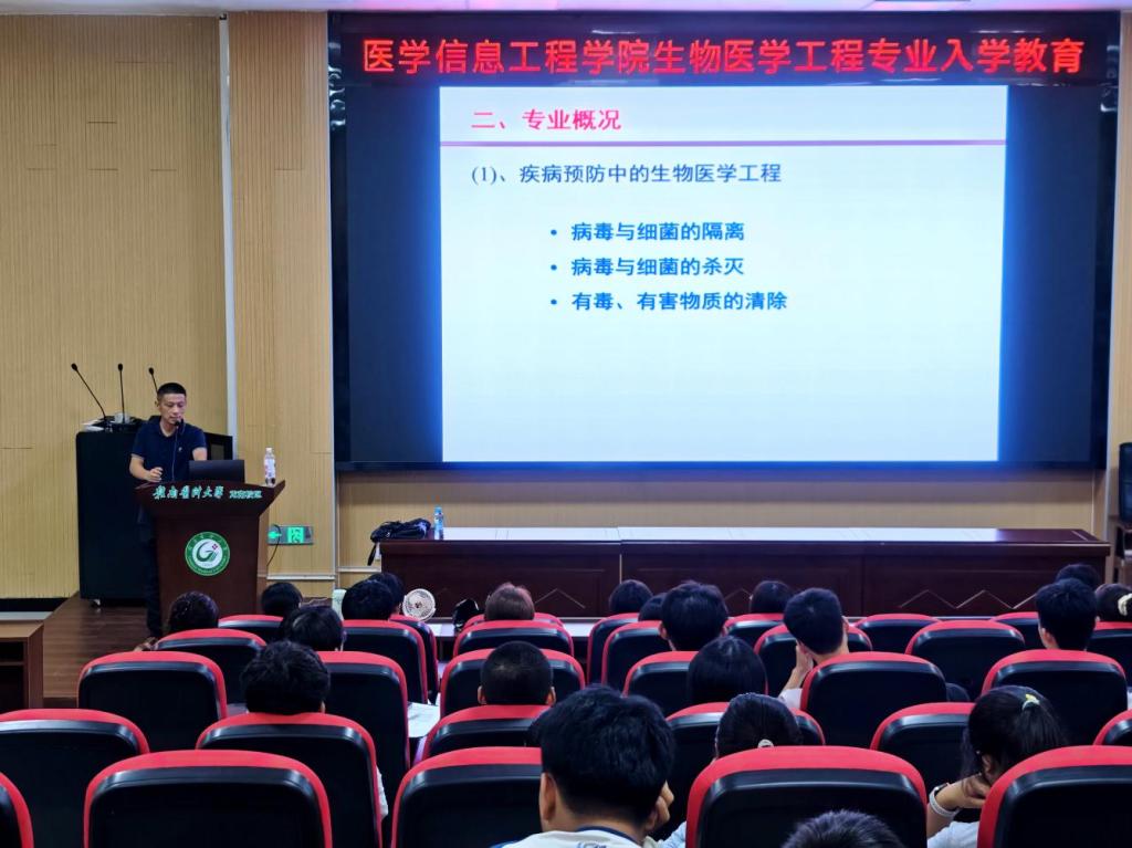会上,钟家洪聚焦生物医学工程专业,从专业历史沿革切入,结合学院专业建设成果与培养方案,系统解读专业定位、学科属性及核心课程。从《医学影像设备原理》《生物信号处理》等核心课程的学习重点,到临床工程实践、医工创新设计等能力培养路径,他用通俗语言拆解专业内涵;杨辉老师全程参与互动,针对新生提出的“专业学习难点突破”“就业方向”“考研深造方向选择”等问题逐一细致解答,现场交流氛围热烈,有效化解新生的专业困惑。